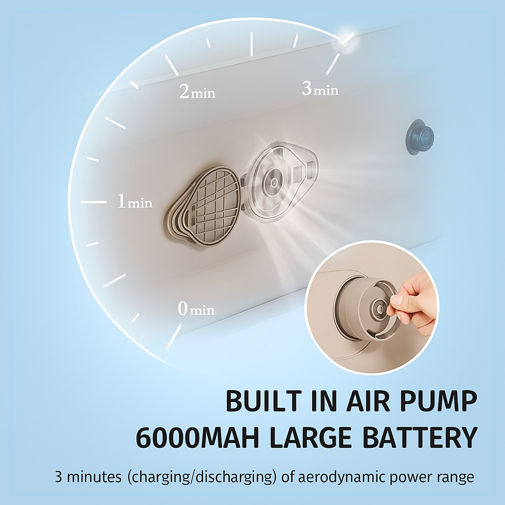 • Built-in Electric Pump: Our inflatable air mattress has a built-in electric pump that inflates and deflates the mattress in just 2 minutes and stays fully inflated for an extended period of time, making the setup process a breeze.Control your sleep environment with a touch, ensuring hassle-free adjustments and ultimate relaxation.